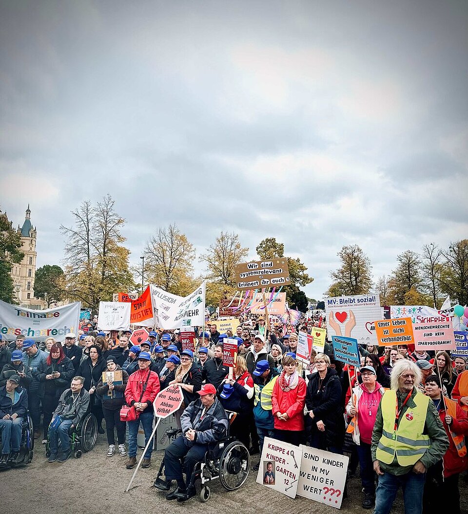 Menschen aus ganz Mecklenburg-Vorpommern standen Seite an Seite – gegen Kürzungen, für ein soziales MV.
