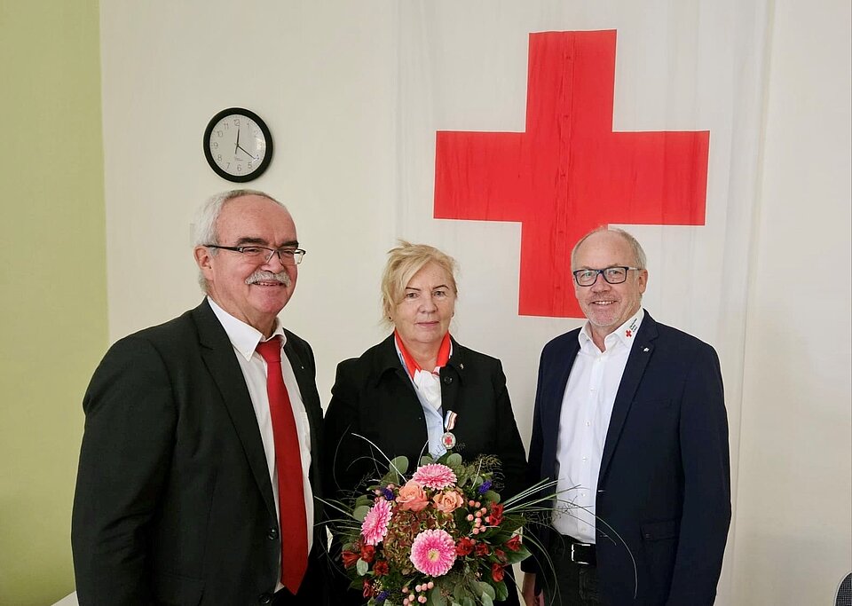 Feierlichster Moment des Tages: Die Ehrung von Marita Lemke und Heinz Grittner mit der Verdienstmedaille für ihr langjähriges Engagement im Roten Kreuz.