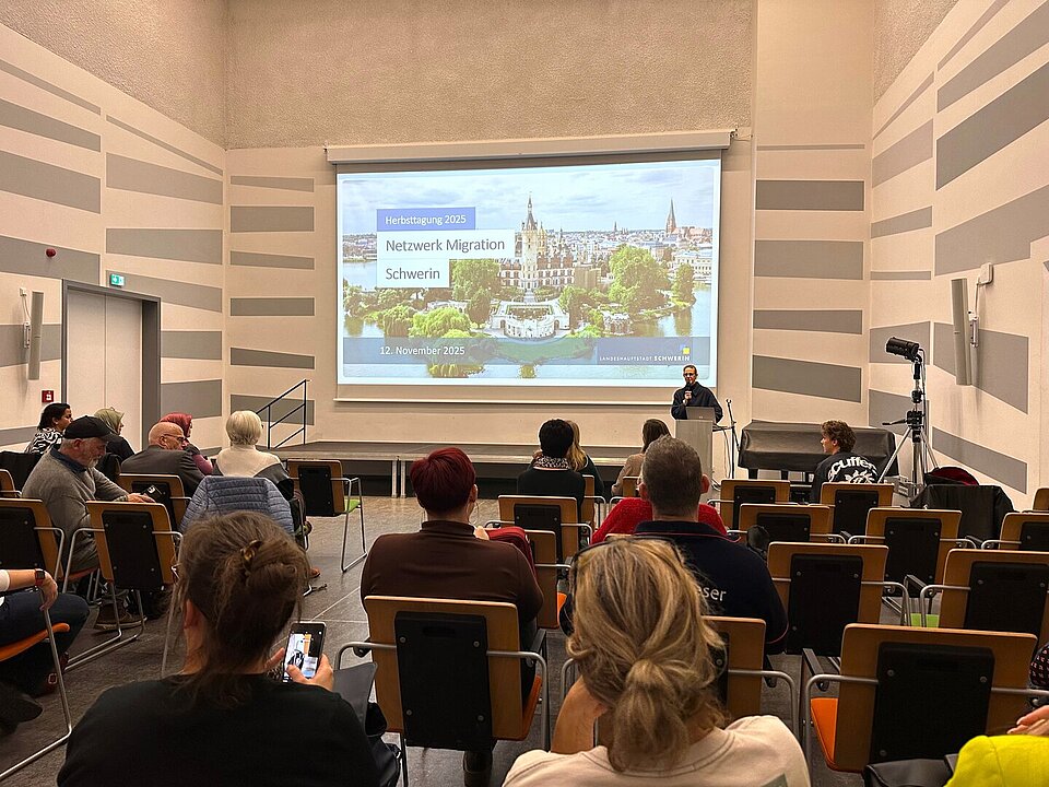 Am 12. November 2025 fand die Herbsttagung des Netzwerks Migration Schwerin im Campus am Turm mit Vertreterinnen und Vertreter aus Zivilgesellschaft, Verwaltung und Initiativen statt, um gemeinsam über aktuelle Themen der Migrations- und Integrationsarbeit zu diskutieren. Neben aktuellen Informationen aus den Arbeitstischen, der Fachstelle Chancengleichheit konnten die Anwesenden sich einen Einblick in die aktuelle Arbeit in der Erstaufnahmeeinrichtung Stern Buchholz und den kommunalen Gemeinschaftsunterkünften in Schwerin erhalten. In lockerer Atmosphäre wurden Netzwerkstrukturen gestärkt, neue Kooperationen angeregt und Ergebnisse der letzten Monate vorgestellt. Auch das neue Welcome Center der Landeshauptstadt Schwerin sowie die neue Fachkräfte-Service-Zentrale des Landes M-V, die eine Bereicherung für die Integrationsarbeit von Migrantinnen und Migranten sind, sprachen über ihre Arbeit.