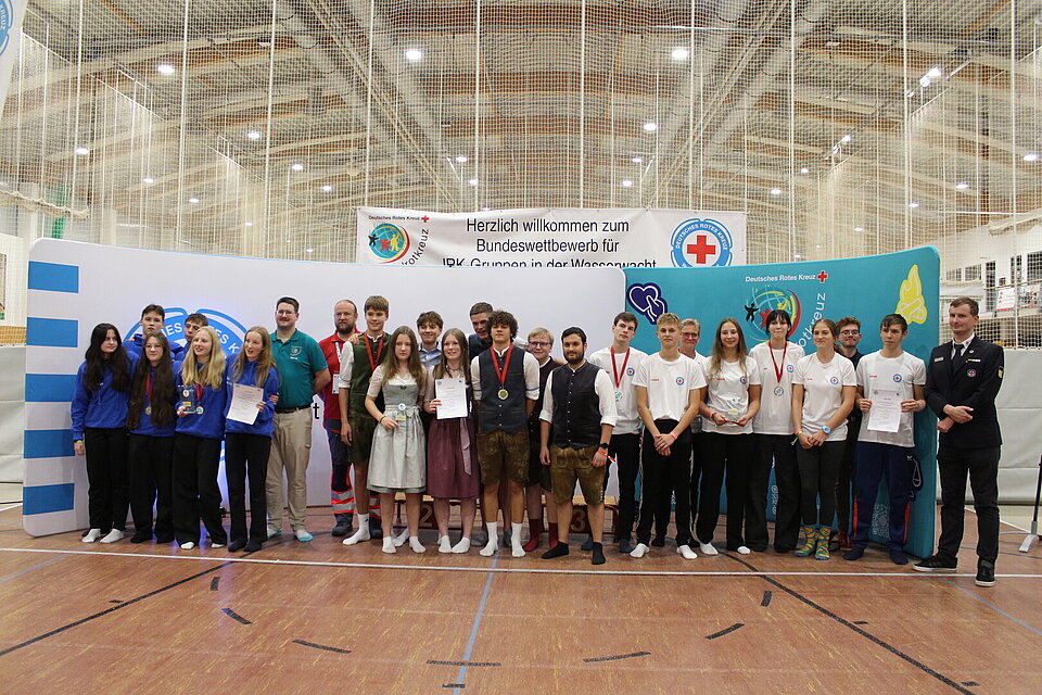 Über 150 junge Rotkreuzler aus ganz Deutschland traten in 26 Teams gegeneinander an – im Wasser, an Land und mit Köpfchen. Neben Schnelligkeit zählten Teamgeist, Wissen und Erste-Hilfe-Können.