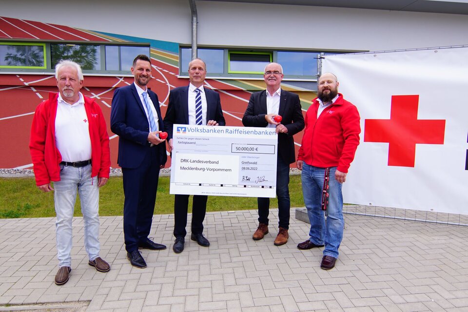 Diese Unterstützung kommt unter anderem von den Volksbanken Raiffeisenbanken in Mecklenburg-Vorpommern. Unmittelbar nach dem Beginn des Krieges stellten sie in Kooperation mit dem DRK-Landesverband eine Spendeninitiative auf die Beine. Die genossenschaftlichen Kreditinstitute spendeten gemeinsam insgesamt 50.000 Euro an das DRK in MV. „Wir nehmen unsere Verantwortung wahr und wollen mit unseren Spenden zu den vielfältigen Hilfsmaßnahmen im Land beitragen“, sagt Henry Brackrogge, Sprecher der Volksbanken Raiffeisenbanken in Mecklenburg-Vorpommern. „Das DRK leistet hier vor Ort unglaublich wertvolle Arbeit bei der Hilfe für die betroffenen Menschen, die wir als regionale Genossenschaftsbanken selbstverständlich unterstützen. Wir helfen, wenn Hilfe gebraucht wird.“